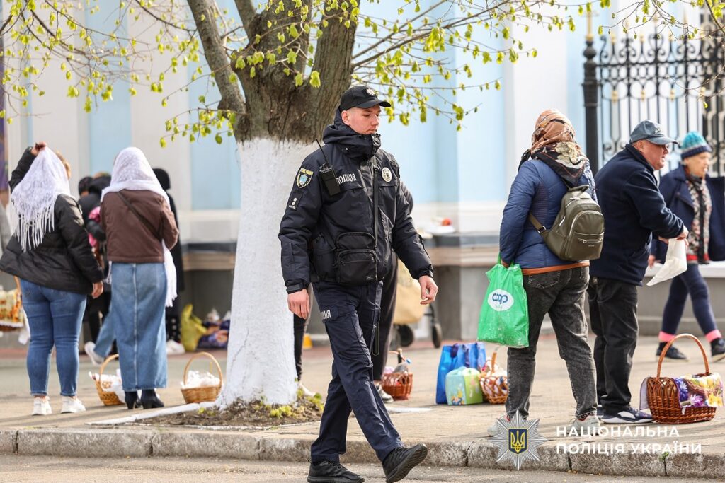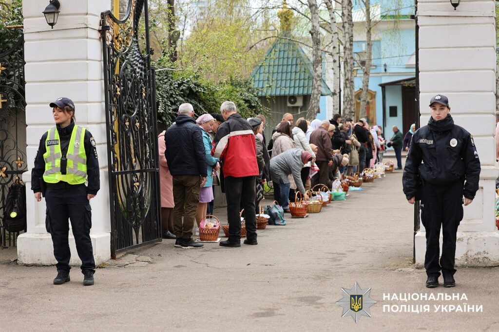 Вчора до несення служби заступили спільні патрулі, до складу яких увійшли поліцейські, нацгвардійці та представники добровольчих формувань територіальних громад. До початку Великодніх богослужінь поліцейські, вибухотехніки і кінологи обласного главку поліції обстежили культові споруди на наявність небезпечних предметів.