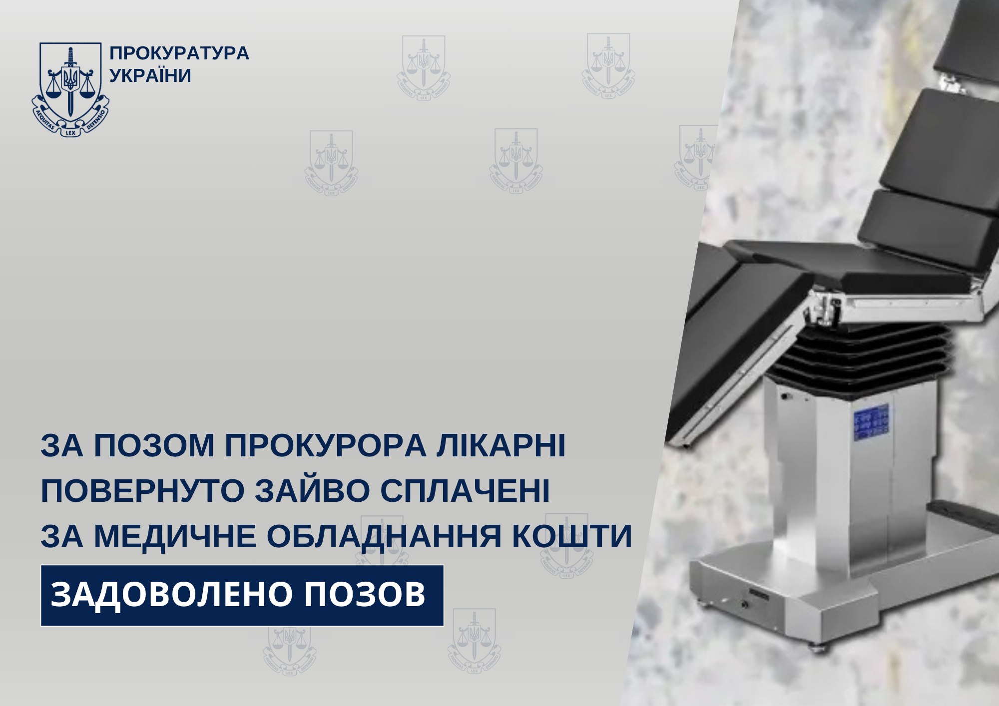 Господарським судом області задоволено позов Окружної прокуратури міста Миколаєва Миколаївської області – визнано недійсним в частині договір про придбання одним з лікувальних закладів міста операційного столу та стягнуто з продавця зайво включений до ціни обладнання податок на додану вартість в сумі близько 120 тис.грн.