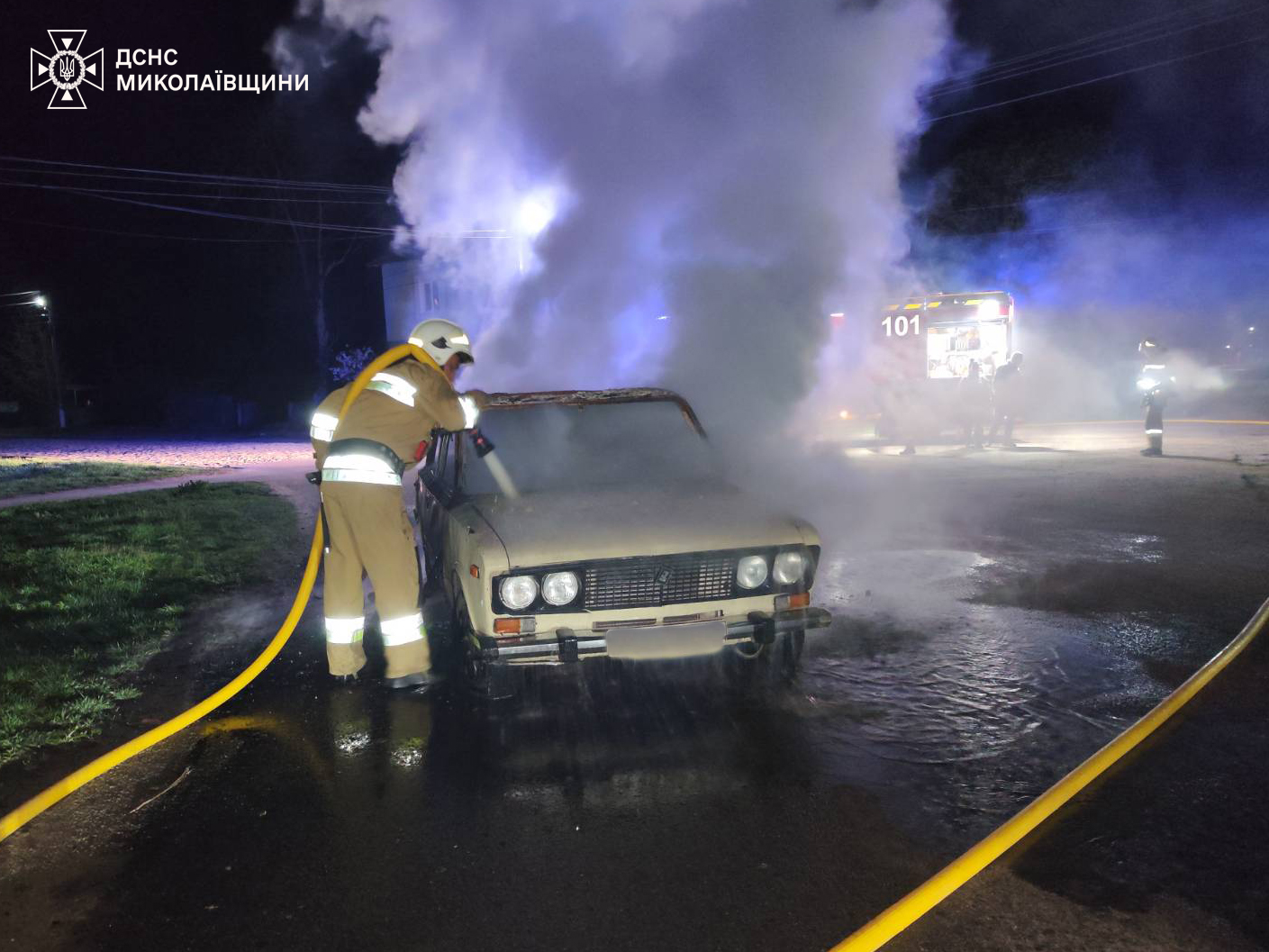 Так, вночі у с. Врадіївка Первомайського району рятувальники ліквідували пожежу легкового автомобіля ВАЗ 2106 на площі 4 кв. м. Вогнем частково пошкоджено проводку моторного відсіку.