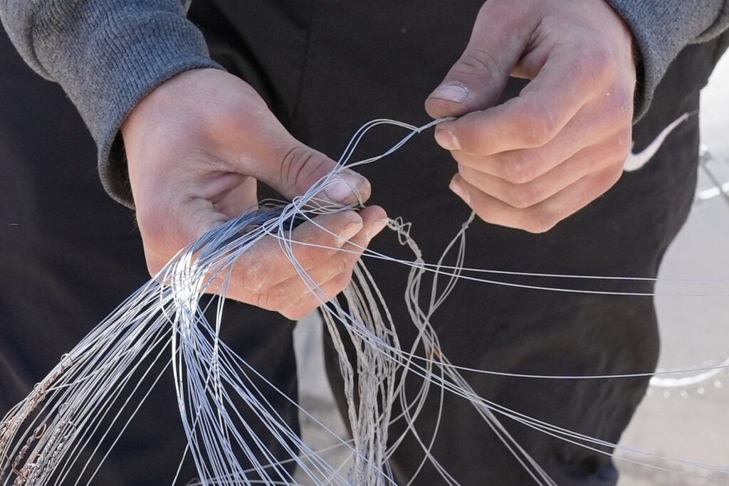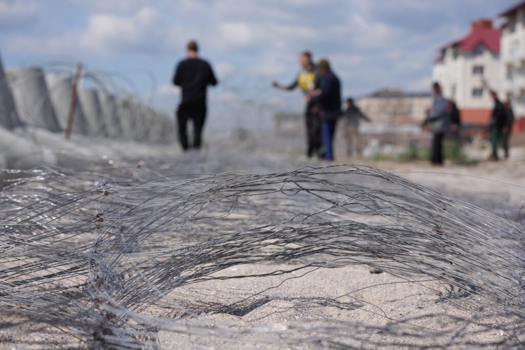 Між тетраподами — щільні смуги загороджень із колючого дроту: сітка «Єгоза» та сітка «путанка». Вони не просто ускладнюють рух — вони сплутують, затримують і змушують зупинятися. Разом ці елементи працюють як єдина система, де кожен метр узбережжя під контролем і має своє призначення.