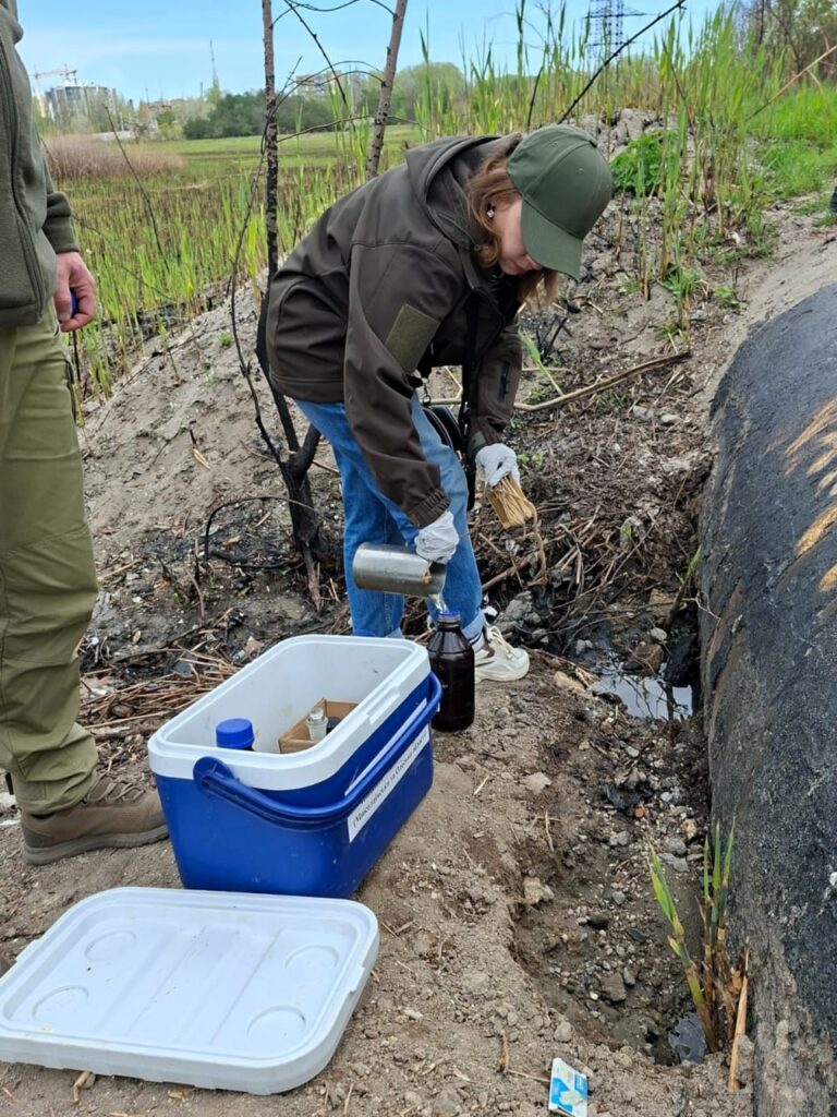 Під час обстеження за координатами 46.948193, 31.950617 виявлено колодязі, з яких відбувається витік невідомої речовини з характерним запахом стічно-фекальних вод. Для встановлення характеру забруднення відібрано проби води.