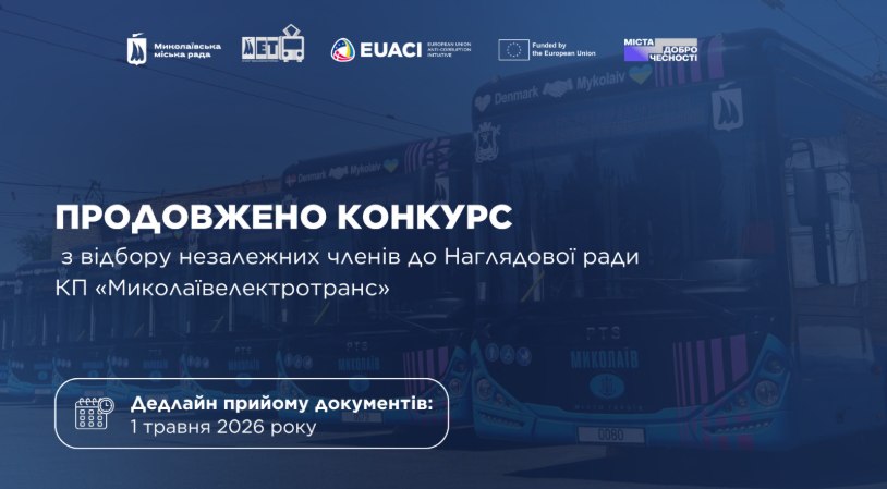 Але сьогодні, 21 квітня, Миколаївська міськрада повідомила, що «для забезпечення належного рівня конкуренції та якості відбору незалежних членів Конкурсна комісія ухвалила рішення щодо продовження строку подання документів на конкурсний відбір трьох незалежних членів наглядової ради КП ММР «Миколаївелектротранс» до 1 травня 2026 року».
