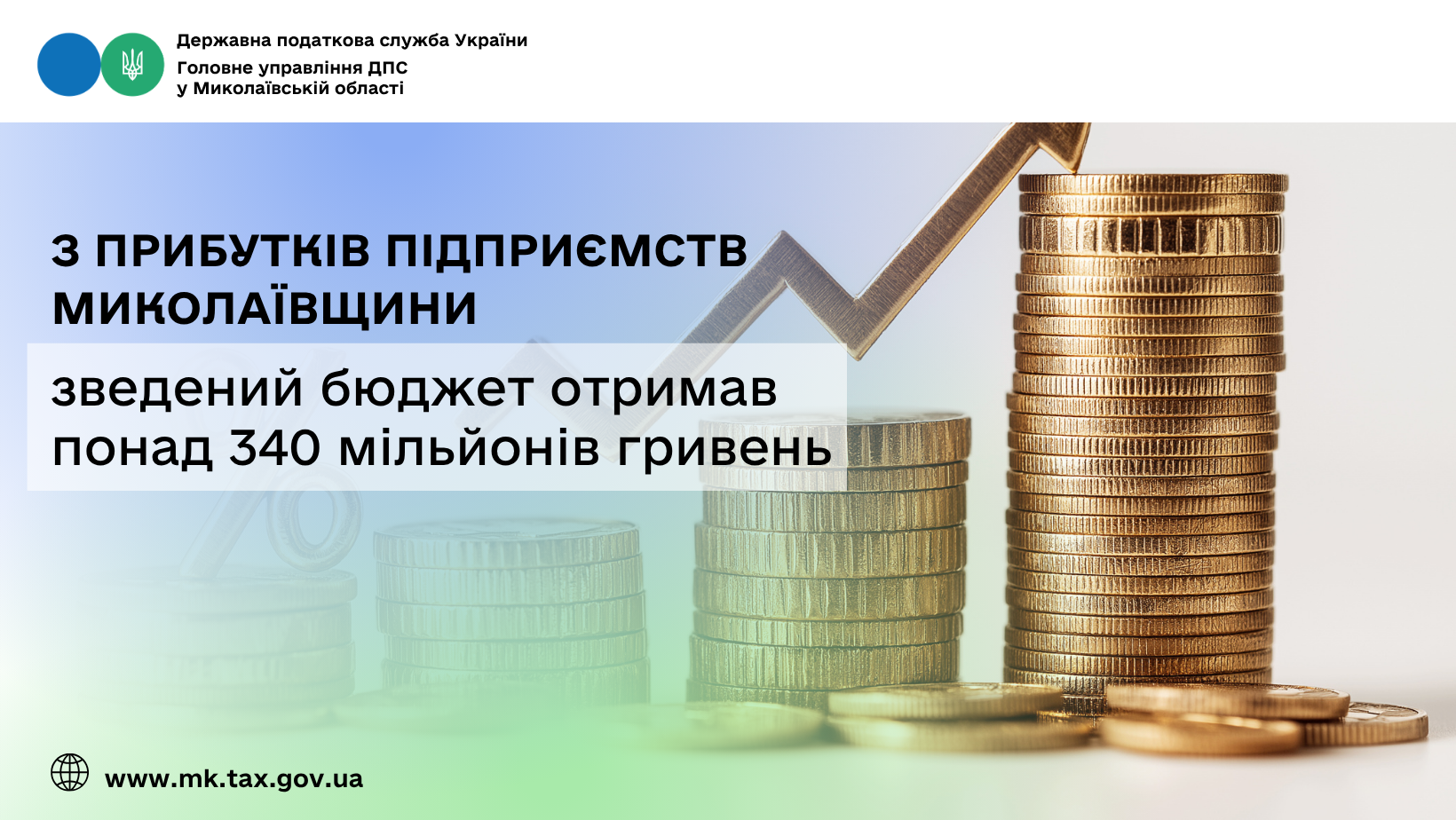 Упродовж січня – березня 2026 року платники податків Миколаївщини перерахували до державного бюджету 304,2 млн грн податку на прибуток або 6,9 відс. від загальної суми збору до державного бюджету.
