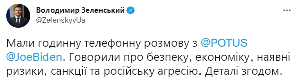 Зеленский рассказал, что телефонный разговор с Байденом длился час. Он обсудил с президентом США безопасность, экономику, имеющиеся риски, санкции и агрессию России.