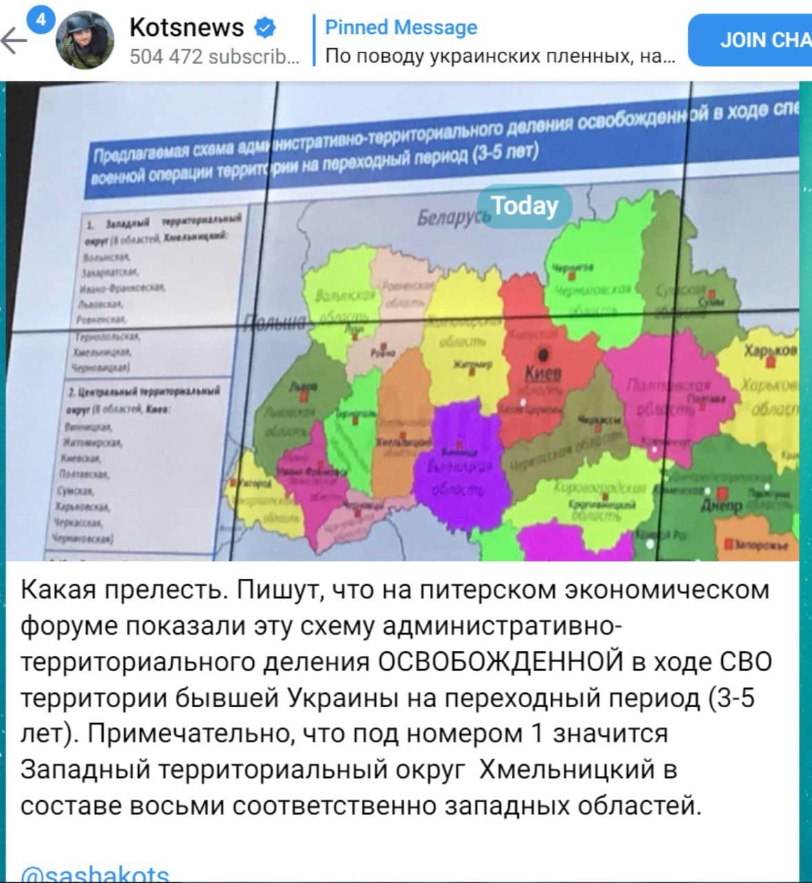 Политтехнолог опубликовал карту, которую предложили представители российских властей по разделу Украины. Примечательно, что под №1 предлагается создание “Западного территориального округа” с центром в Хмельницком. В него, согласно сумасшедшим планам Кремля, должны войти Волынская, Закарпатская, Ивано-Франковская, Львовская, Ровенская, Тернопольская, Черновицкая и Хмельницкая области.
