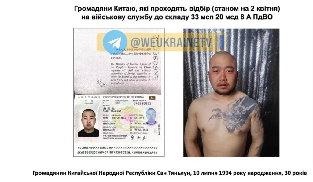 – Є 155 людей з прізвищами, з паспортними даними, – 155 громадян Китаю, які воюють проти українців на території України. Ми збираємо інформацію, вважаємо, що їх більше, набагато. По цих 155 є паспортні дані, звідки вони, їх китайські документи, вік тощо, — зазначив президент.