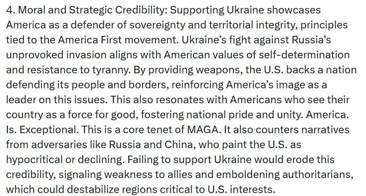 4. Моральна та стратегічна надійність: підтримка України показує Америку захисником суверенітету та територіальної цілісності.
