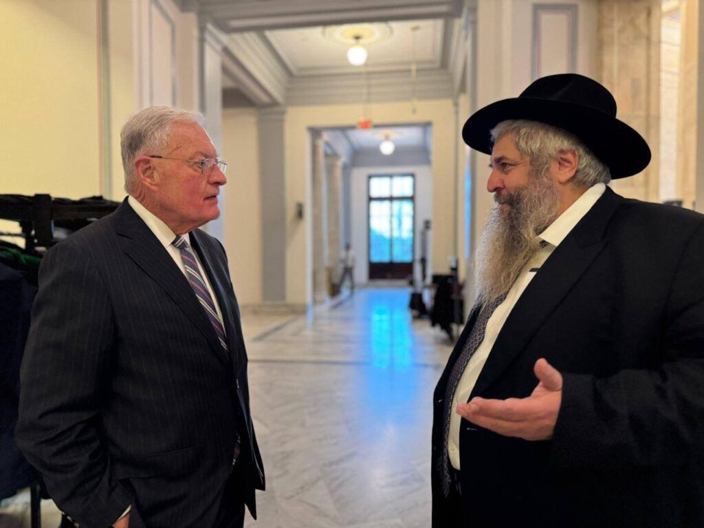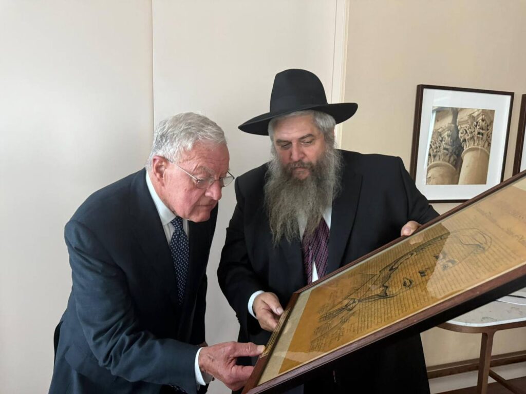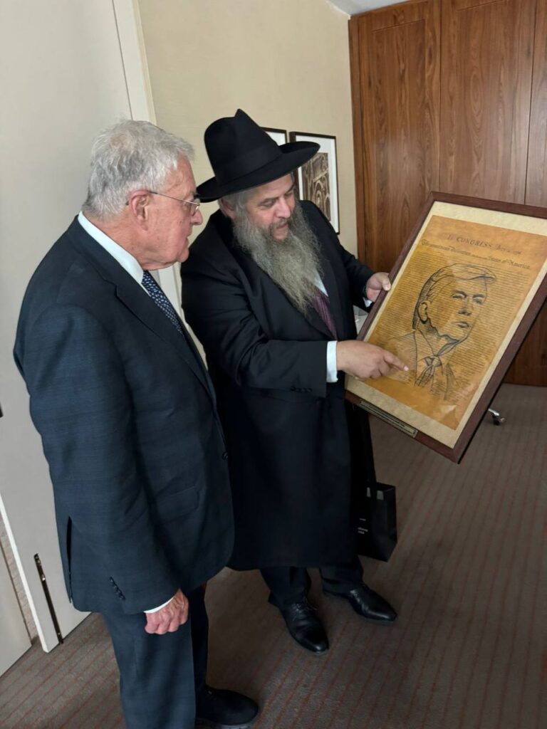 Головний рабин України Моше Асман передав спецпредставнику президента США в Україні Кіту Келлогу картину з портретом Трампа і декларацією США.