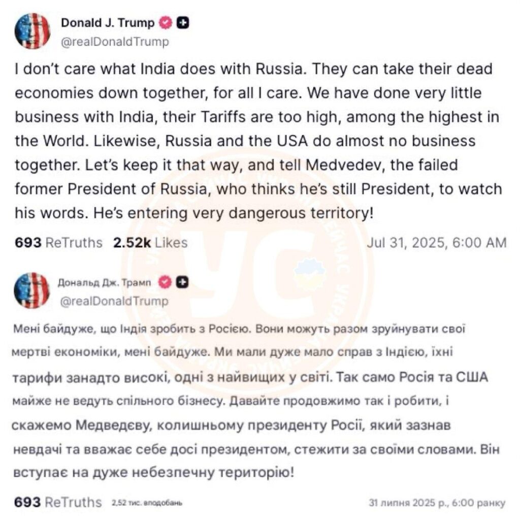 Як повідомляло ІншеТВ, “Скажіть Мєдвєдєву стежити за своїми словами” – Трамп відреагував на хамство експрезидента РФ