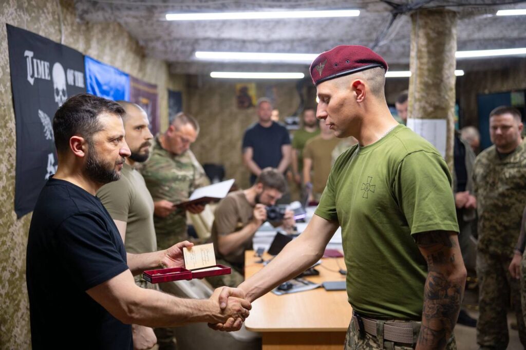 У пункті управління 2-го десантно-штурмового батальйону 80-ї окремої десантно-штурмової Галицької бригади Президент України Володимир Зеленський відзначив воїнів державними нагородами та заслухав доповіді командирів про оперативну обстановку в смузі відповідальності підрозділу.