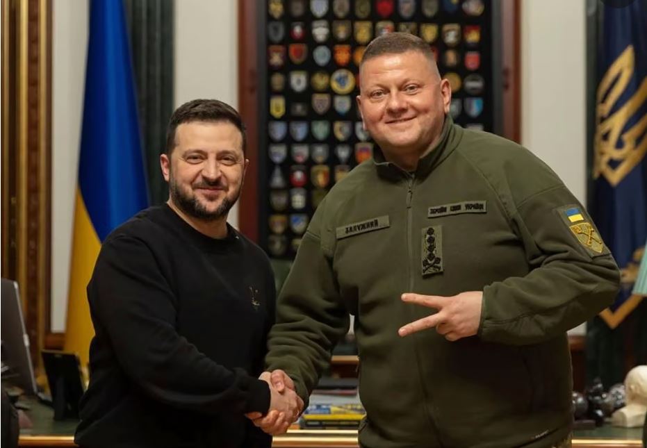 Після вторгнення Зеленський спочатку залишив військову стратегію Залужному, зосередившись на мобілізації міжнародної підтримки для Києва. Зеленський став міжнародним символом української стійкості; Залужний здобув статус культового героя всередині країни.