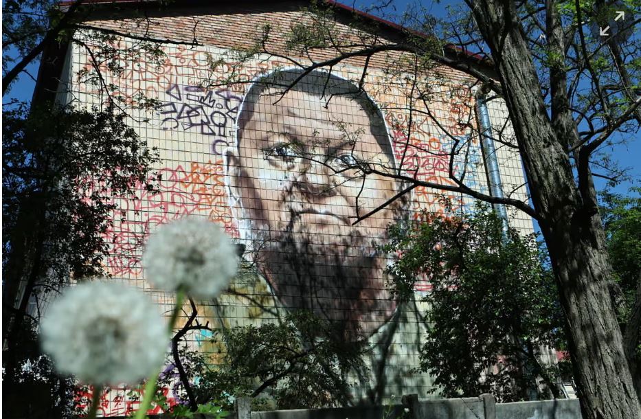 Загальний вигляд муралу, присвяченого Валерію Залужному в Києві Валерій Залужний має друге за впізнаваністю обличчя в Україні та вважається військовим героєм. Фото: Global Images Ukraine/Getty Images