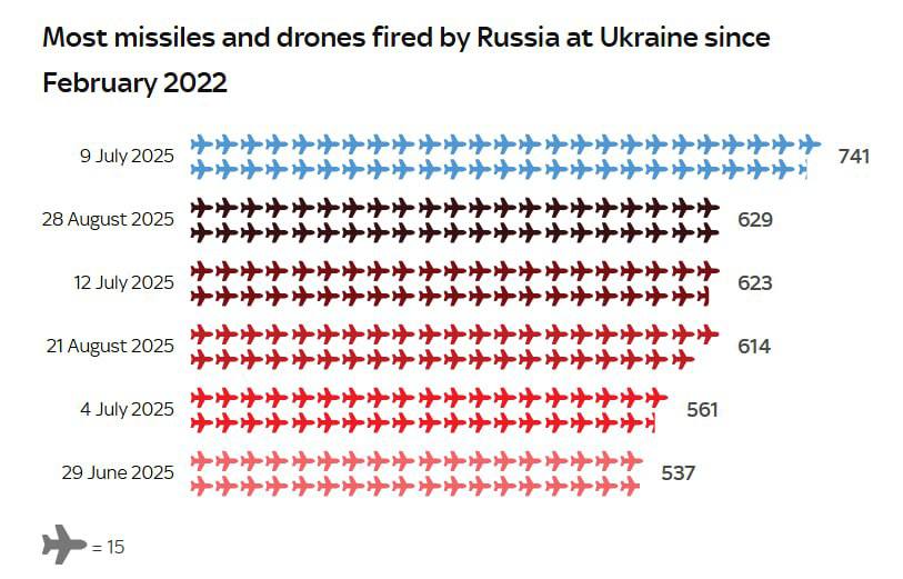 Насправді, усі найбільші повітряні атаки Росії на Україну відбулися після кінця червня.