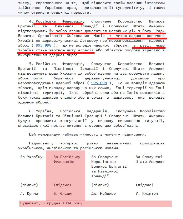 Меморандум про гарантії безпеки у зв’язку з приєднанням України до Договору про нерозповсюдження ядерної зброї (пункти 2–4)