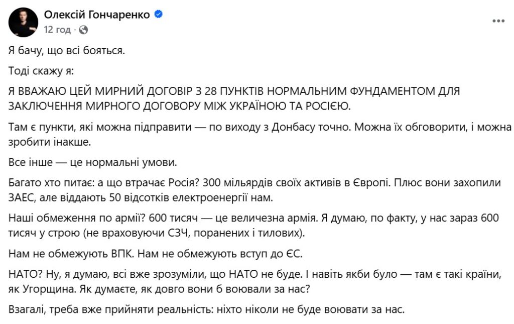 А от нардеп від ЄвроСолідарності Олексій Гончаренко вважає план хорошим