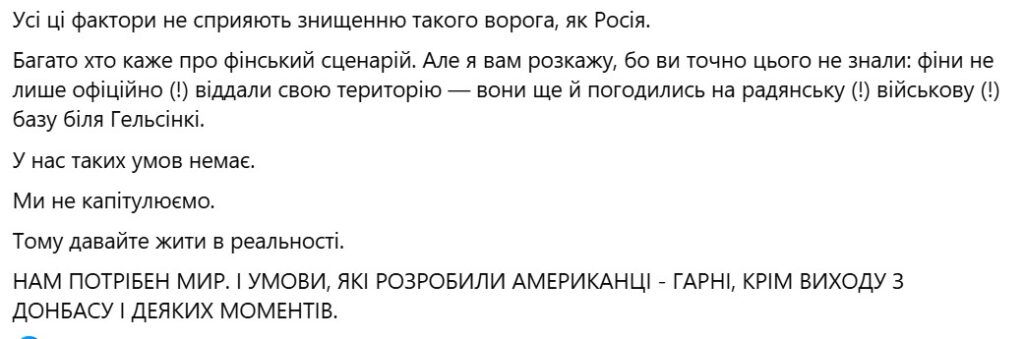 Колишня радниця також акцентувала, що нинішня адміністрація США виявляє бажання, аби Україна погодилася на мирні умови, не враховуючи всіх чинників, що діють у конфлікті.