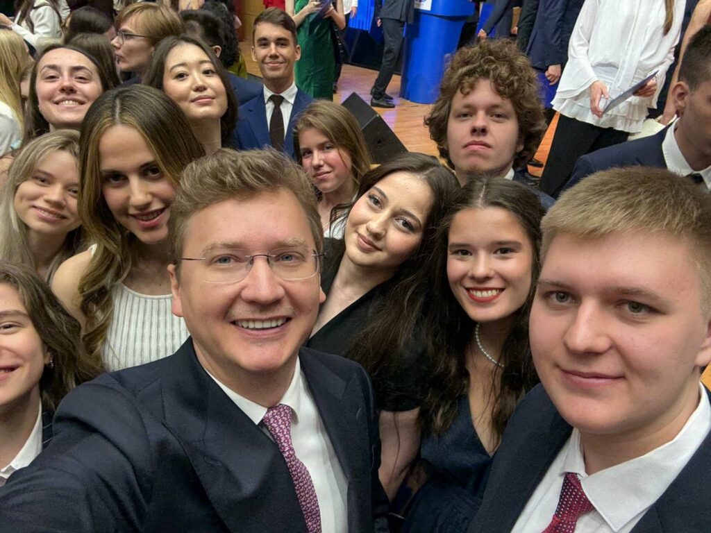 Зейн аль-Асад у білій сукні закінчує університет. На фотографії на офіційному вебсайті МДІМВ 22-річна Зейн стоїть з іншими випускниками.