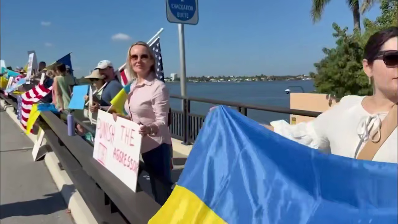 Біля резиденції в Мар-а-Лаго, де має відбутися зустріч Трампа із Зеленським, зібралися українці і американці, щоб підтримати українського президента.