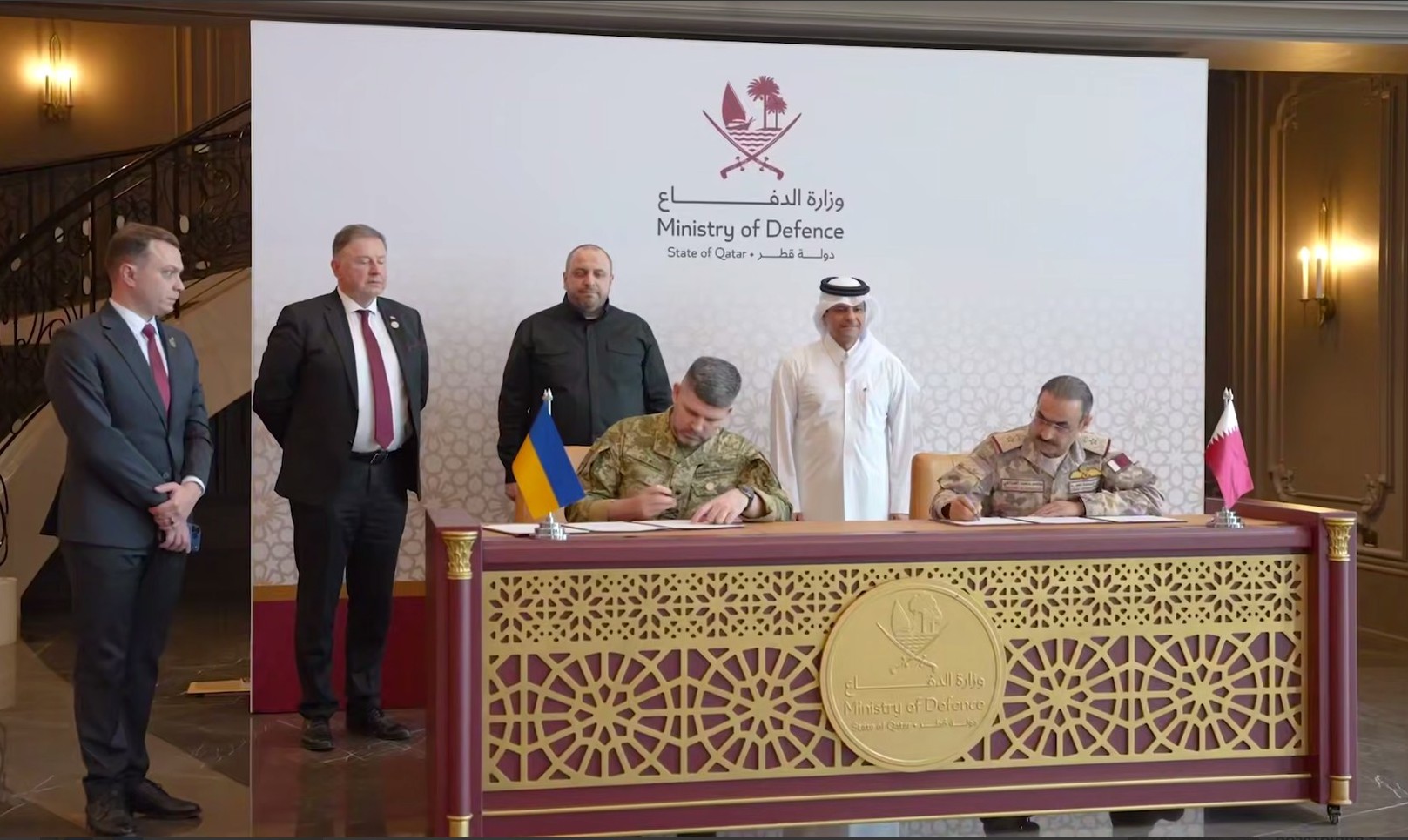 Президент України Володимир Зеленський зустрівся з Еміром Держави Катар шейхом Тамімом бін Хамадом Аль Тані в Досі. Також на зустрічі був присутній Прем’єр-міністр Мухаммад бін Абдулрахман Аль Тані.