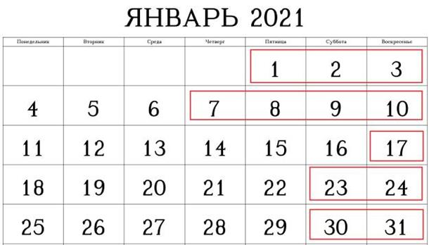 В январе получатся настоящие новогодние и рождественские каникулы. Один дополнительный выходной придется отработать.