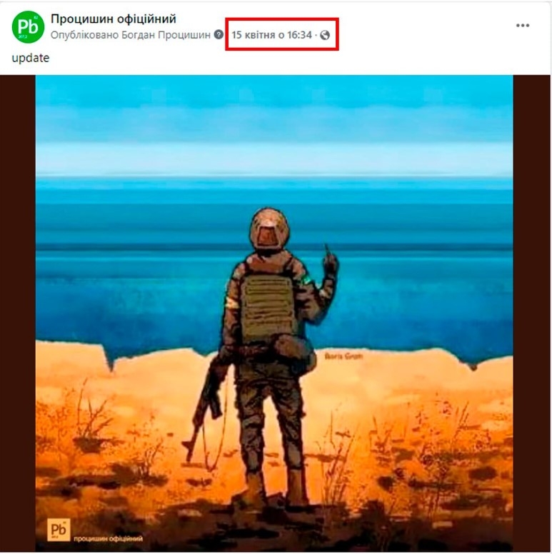 Известный блогер и политический пародист Богдан Процишин заявил, что идею с сюжетом для второй марки “Укрпочта” “одолжила” у него. Процишин сослался на свою публикацию еще за 15 апреля, где действительно на картинке уже нет “русского военного корабля”.