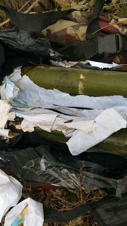 Кроме этого, в лесополосе вблизи села Гнутово Мариупольского района обнаружен тайник, из которого изъято два ручных противотанковых гранатомета РПГ-22.