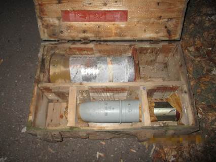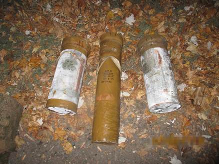 Как сообщает пресс-служба СБУ, эксперты предполагают, что боеприпасы предназначались для проведения терактов (закладка фугасов) на подконтрольной Украине территории. Каждый из снарядов несет в себе до 30 кг взрывчатого вещества. Продолжаются неотложные оперативно-следственные действия.