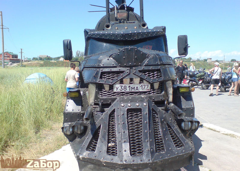 В пгт. Кирилловка Запорожской области привезли необычное авто, которое некоторые называли “бронепоездом”, другие считали, что это машина из серии фильмов о “Безумном Максе”, сообщает “ZаБор“.