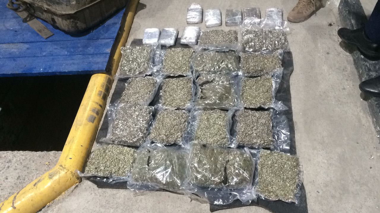 “В топливном баке правоохранители нашли 18 пакетов весом почти 10 кг с веществом серо-зеленого цвета, и 8 твердых пакетов общим весом более 4 кг с веществом коричневого цвета. По словам украинца, это конопля и гашиш”,- говорится в сообщение.