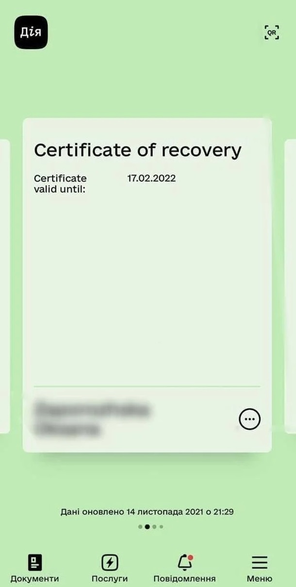 В Дії уже можно загрузить сертификат для переболевших коронавирусом