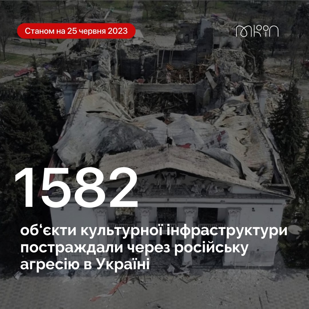 Станом на 25 червня збитків зазнали 1582 об’єкти культурної інфраструктури, без урахування пам’яток культурної спадщини; з них 585 об’єкти – зруйновані.