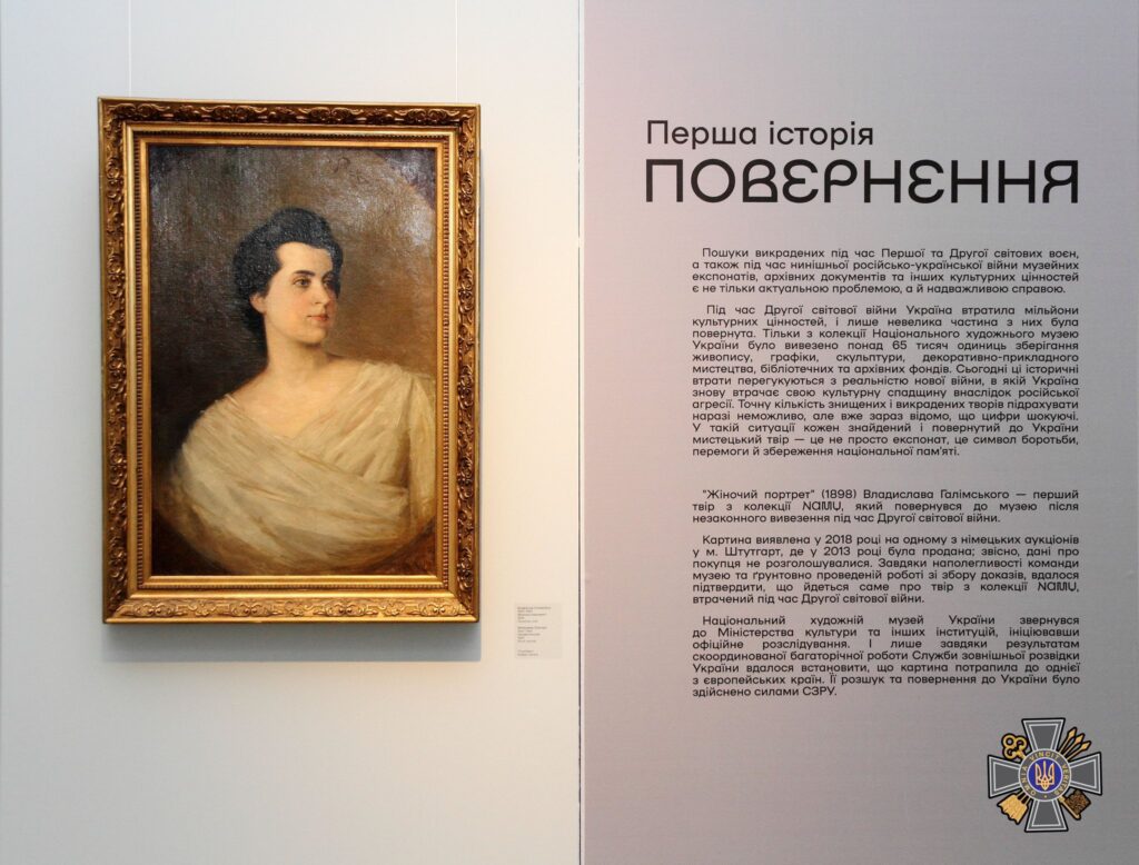 У Національному художньому музеї України представлено особливу роботу – «Жіночий портрет» Владислава Галімського (1898), яку було повернуто українською зовнішньою розвідкою.