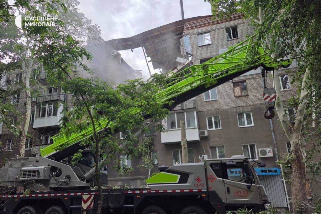 У ніч на 25 травня Миколаїв пережив одну з наймасованіших дронових атак. У Заводському районі міста вибухом зруйнована частина багатоповерхового будинку – верхні поверхи.