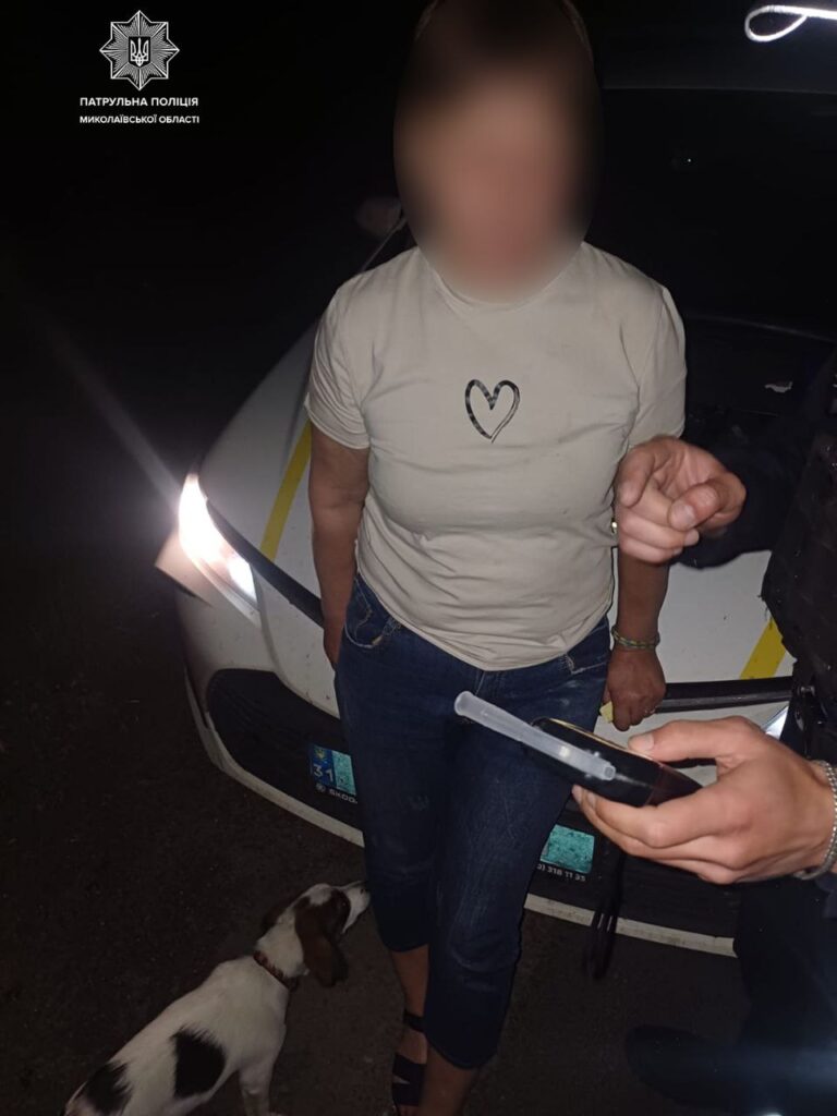Як повідомили в патрульній поліції Миколаївщини, вона погодилася пройти огляд на стан сп’яніння на місці у встановленому законом порядку. Результат тесту становив 2,32 проміле, що майже в 12 разів перевищує допустиму норму.