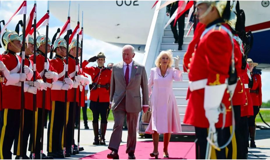 Чарльз III, як глава держави Канади — однієї з країн Британської Співдружності — прибув у супроводі королеви Камілли. Їх зустріли прем’єр Карні, генерал-губернатор Мері Саймон (перша представниця корінних народів на цій посаді) та почесна варта з 25 військовослужбовців Королівського канадського драгунського полку, почесним головнокомандувачем якого є сам король.