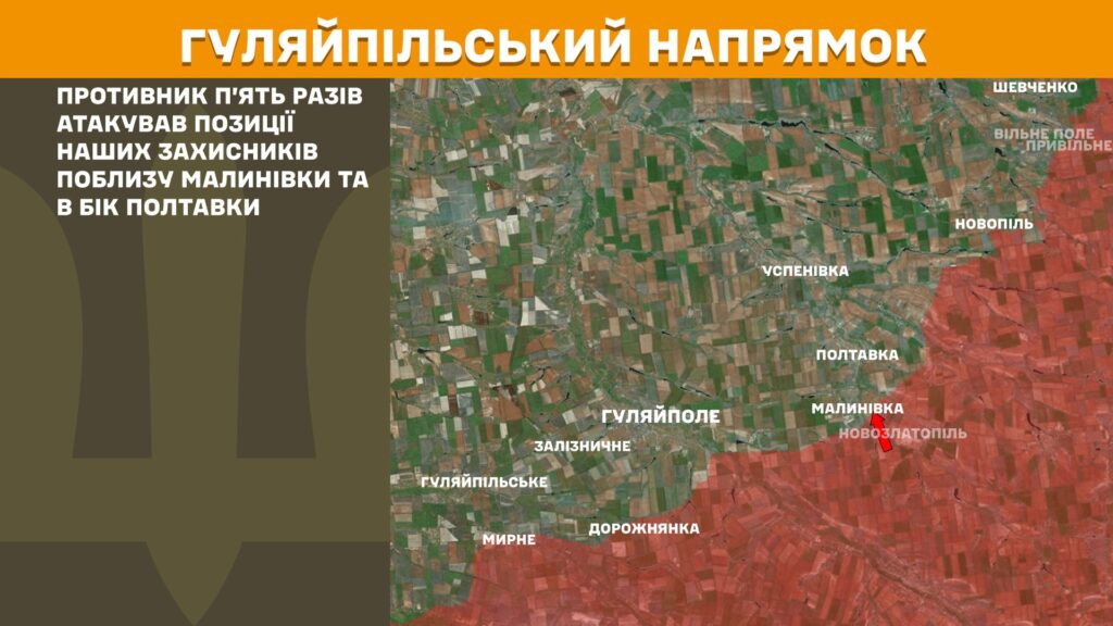 Противник п’ять разів атакував позиції наших захисників поблизу Малинівки та в бік Полтавки на Гуляйпільському напрямку.