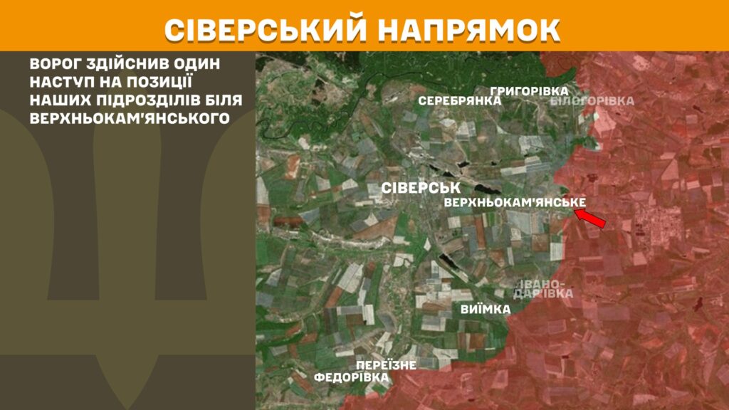 На Сіверському напрямку впродовж дня ворог здійснив один наступ на позиції наших підрозділів біля Верхньокам’янського.