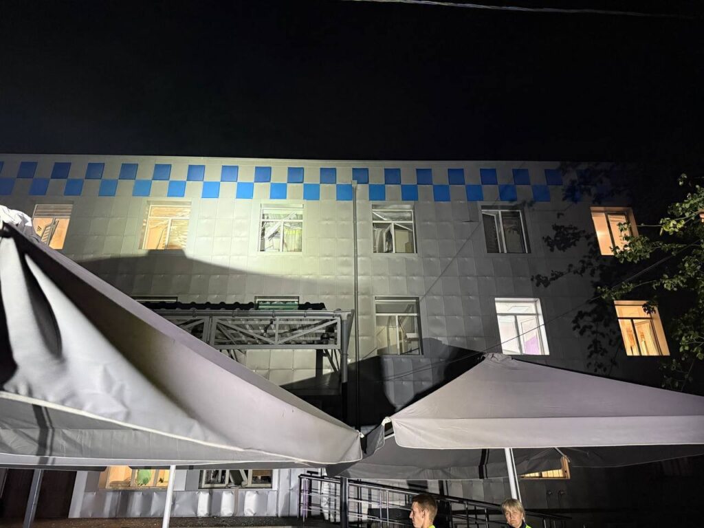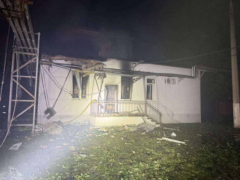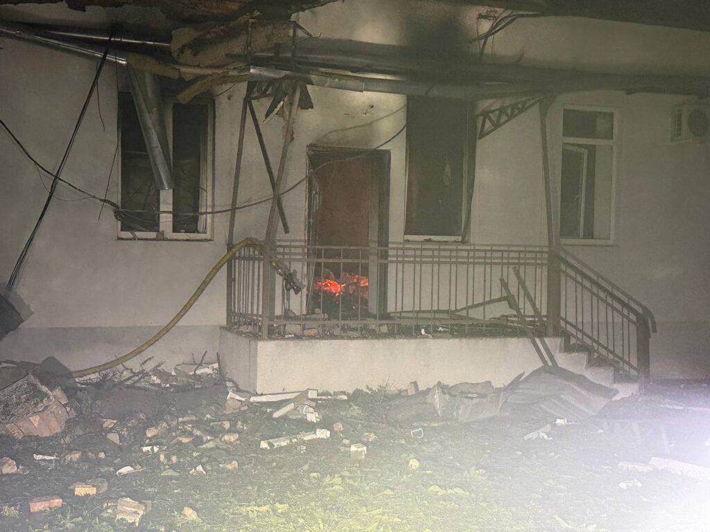 Також вщент зруйнована адміністративна будівля станції екстреної медичної допомоги. На місці пожежа. Є пошкоджені карети швидкої допомоги. Постраждалих серед персоналу немає.