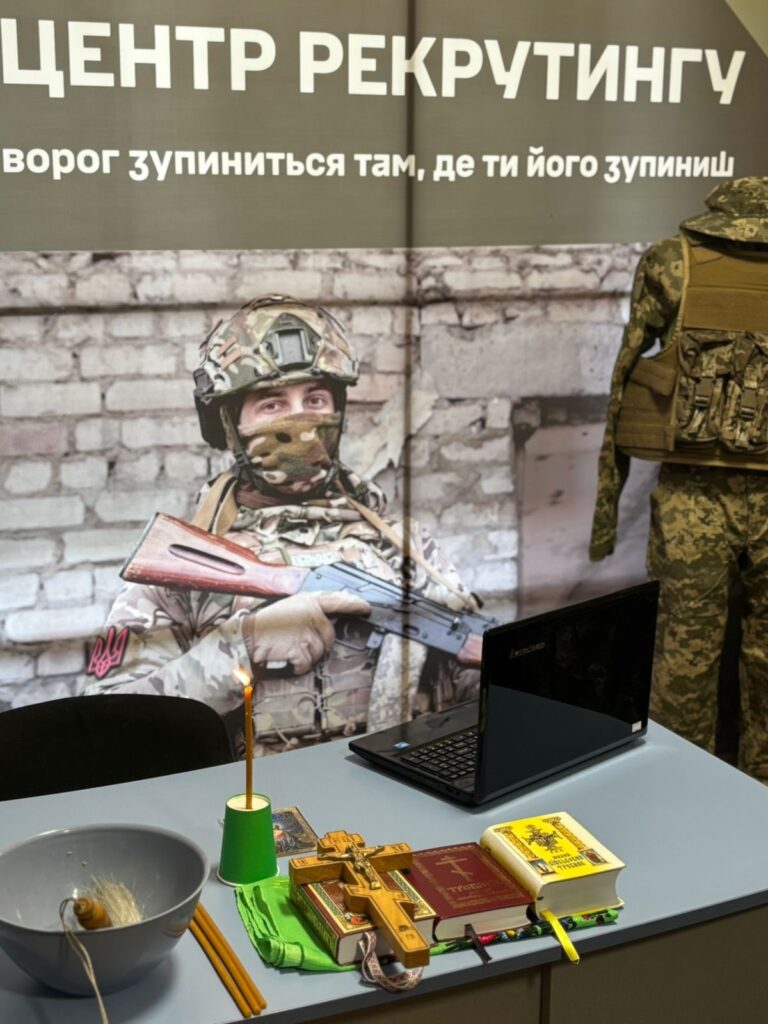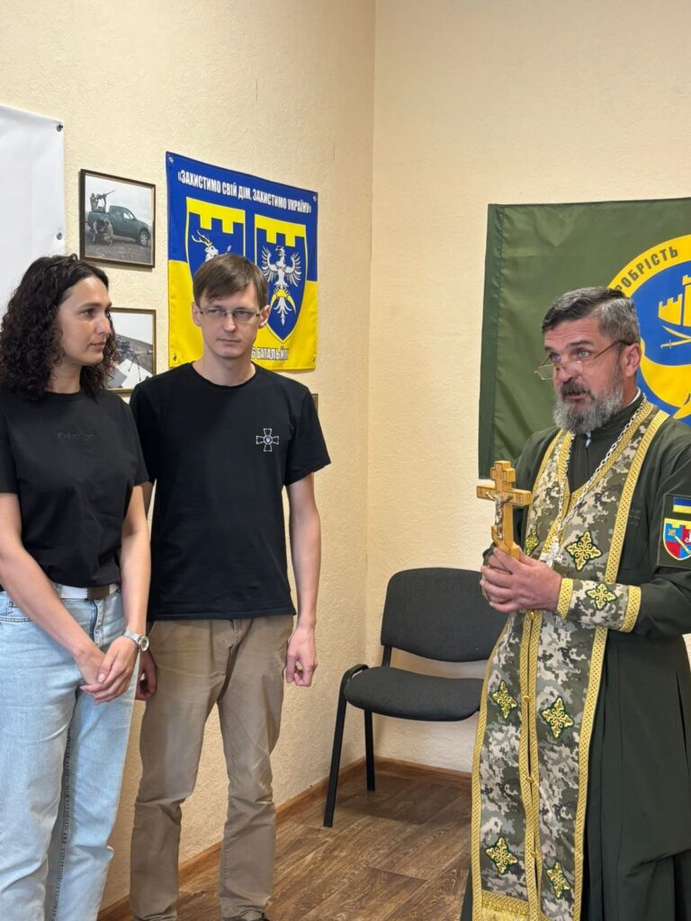 Начальник служби військового капеланства Регіонального управління Сил ТрО “Південь” підполковник Вадим Гончаренко долучився до заходу та провів освячення центру, відслужив молебень за Україну, її народ, за наших захисників та довгоочікувану перемогу, благословив всіх присутніх на ратну працю.