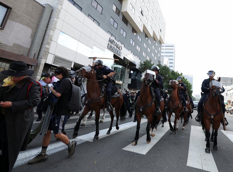 Поліція Лос-Анджелеса видала накази про розгін протестувальників у декількох районах центру міста та схвалила використання нелетальної зброї, яка “може спричинити дискомфорт і біль”. Мітингарям та представникам медіа рекомендували покинути цю територію.