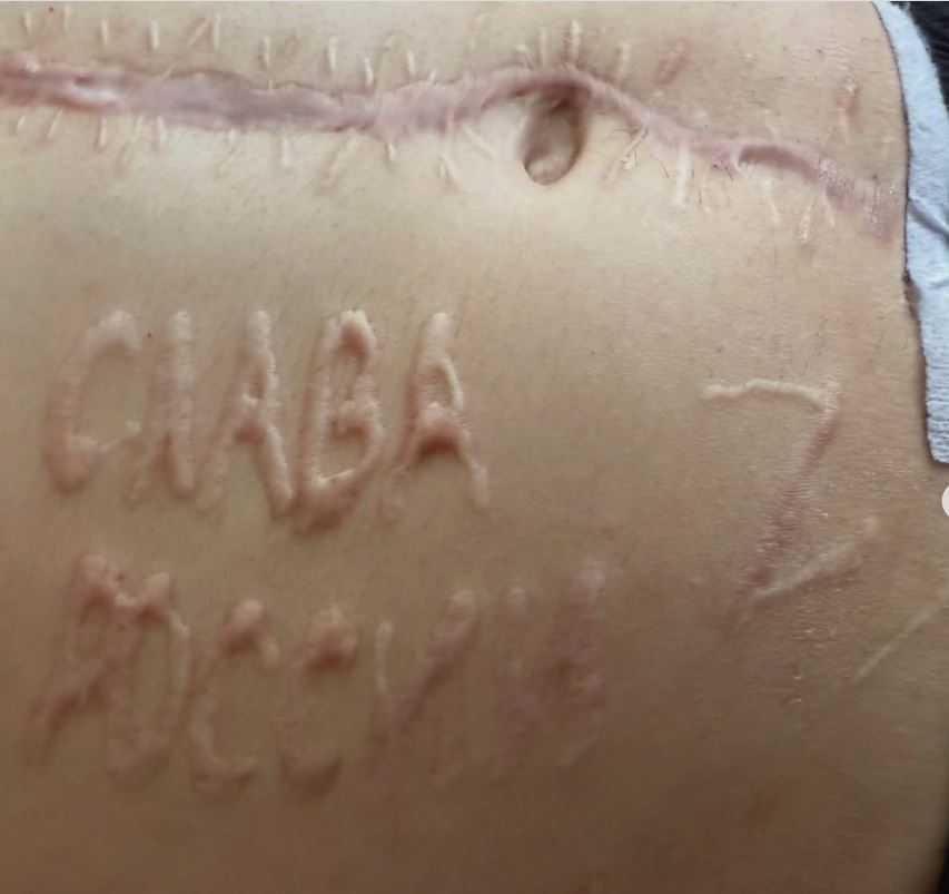 Директор програми “Неопалимі” повідомив, що “лікарі готують рубець до агресивнішого втручання. За кілька місяців від надпису залишиться лише легкий слід”.