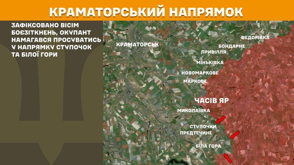 На Краматорському напрямку вчора зафіксовано вісім боєзіткнень, окупант намагався просуватись у напрямку Ступочок та Білої Гори.
