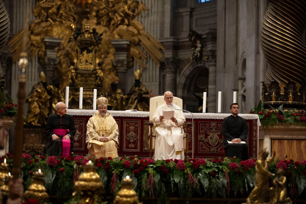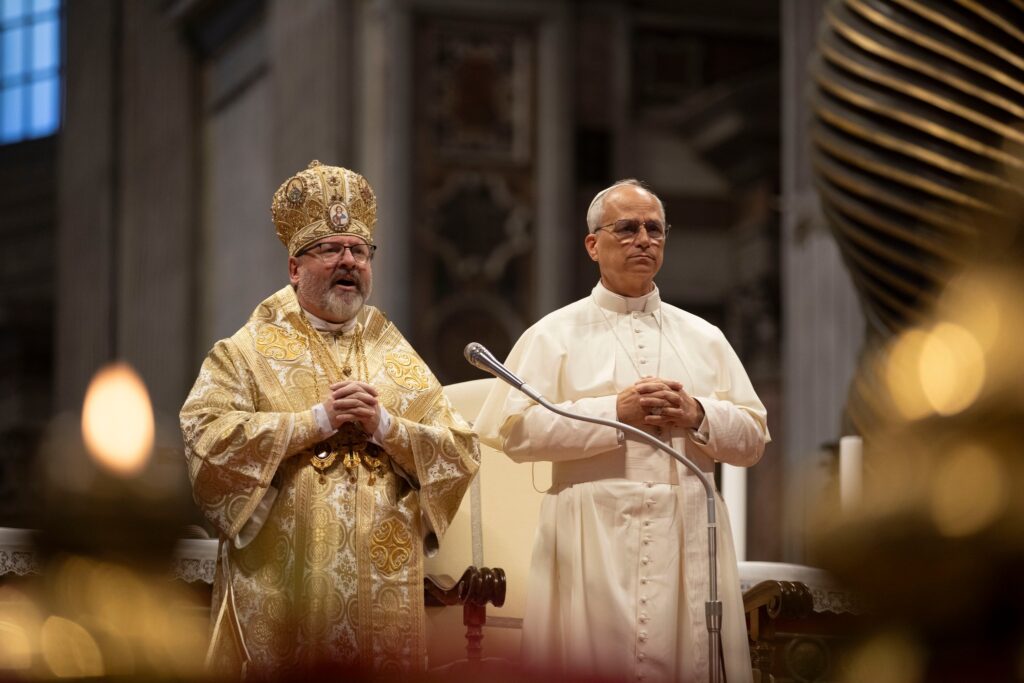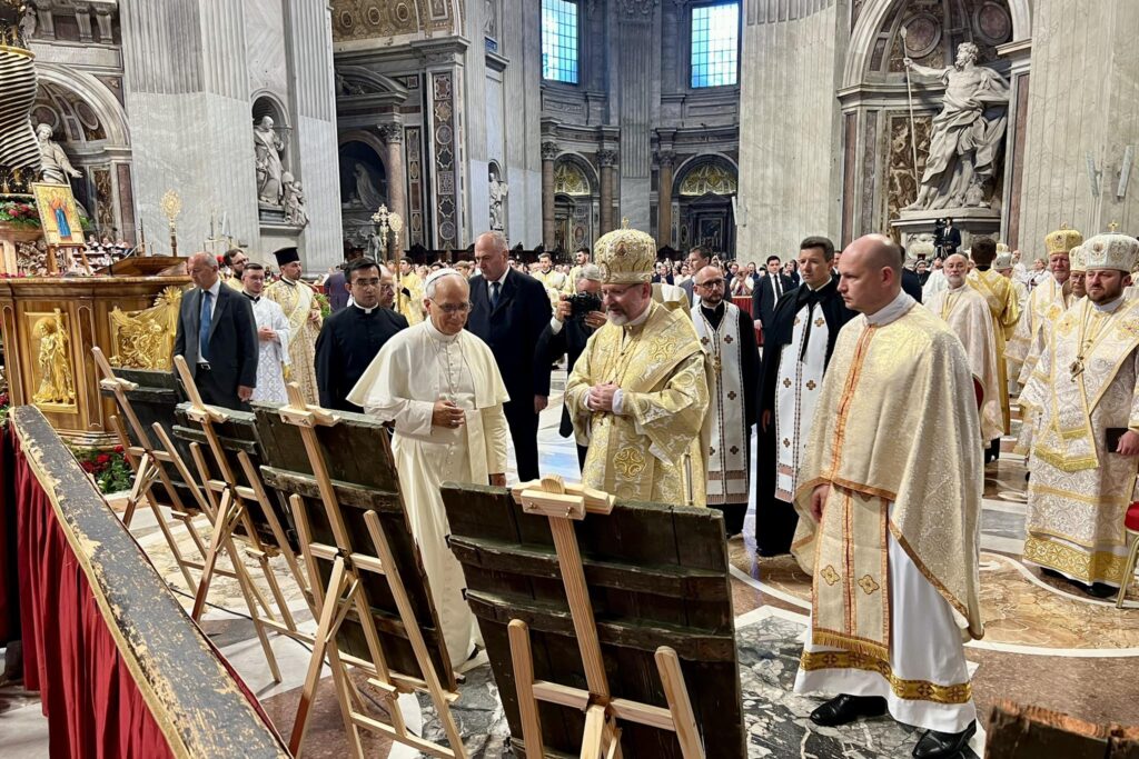 Після привітального слова Папи Блаженніший Святослав разом з усіма українськими паломниками заспівав «Отче наш». Папа привітав особисто кожного з єпископів, а також поспілкувався із матерями загиблих захисників України. Відтак на головному престолі розпочалася Архиєрейська Божественна Літургія, яку очолив Глава УГКЦ у співслужінні з усім Синодом Єпископів УГКЦ.