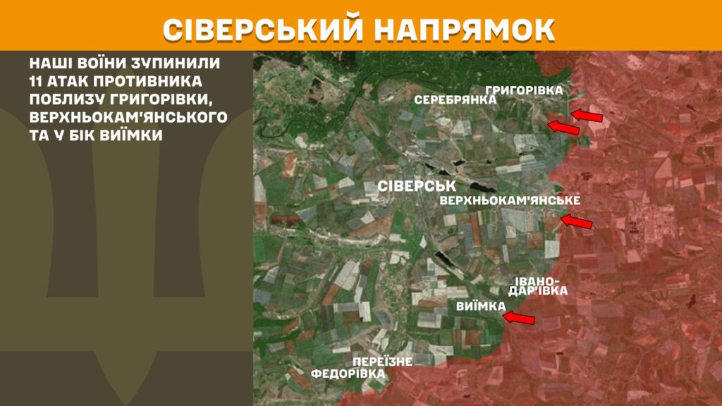 На Сіверському напрямку наші воїни зупинили 11 атак противника поблизу Григорівки, Верхньокам’янського та у бік Виїмки.