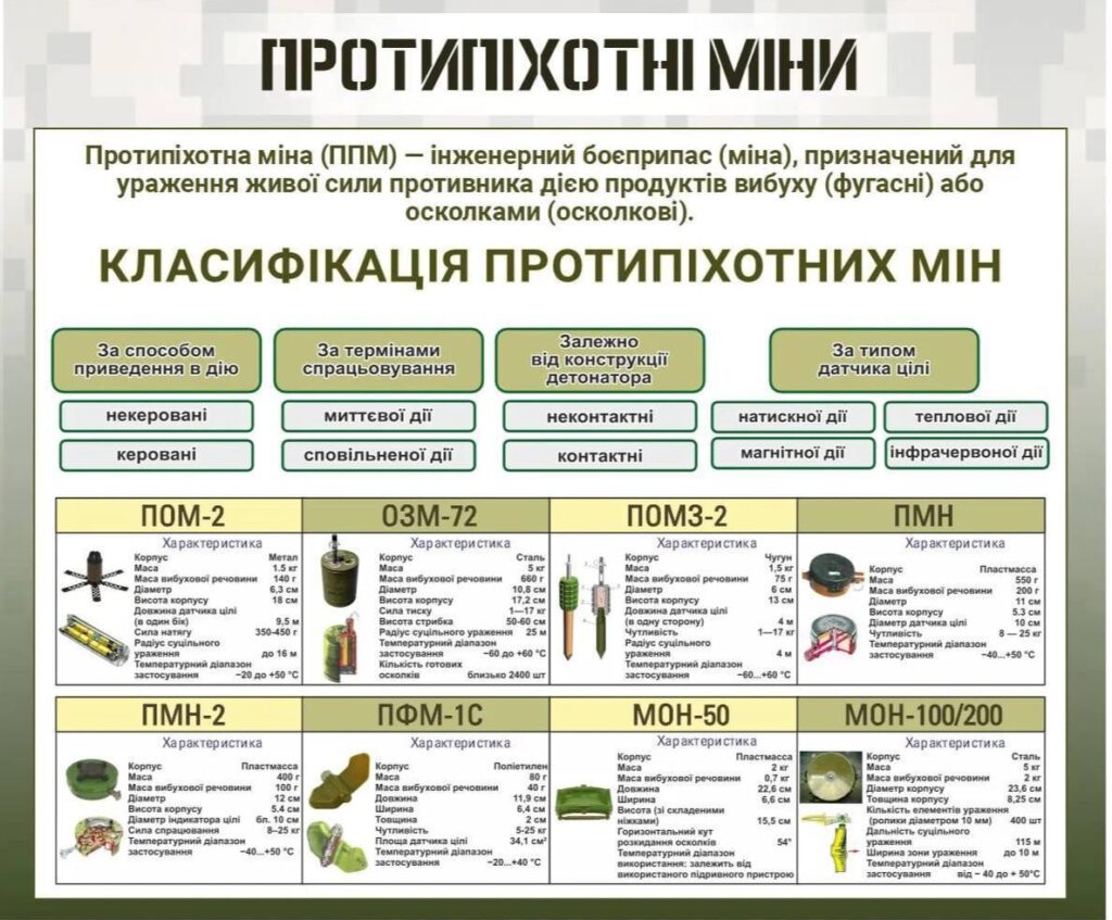 Ось основні типи протипіхотних мін, які можуть застосовуватися в зоні бойових дій: