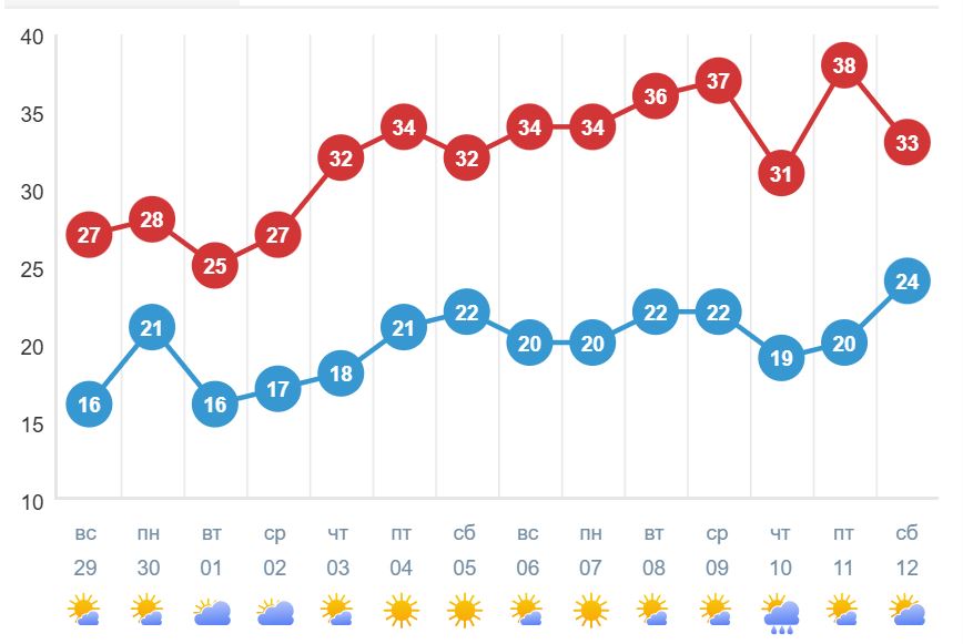 Очікується, що температура в деяких місцях після вихідних перевищить 40°C.