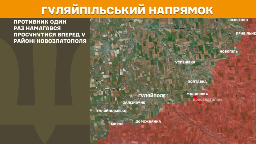 Минулої доби на Гуляйпільському напрямку противник один раз намагався просунутися вперед у районі Новозлатополя.