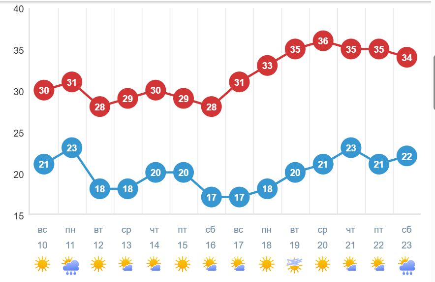У південній частині 11-го серпня передбачається +29+32 градуси.