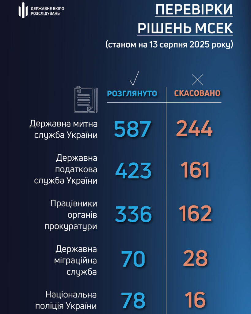 Державна міграційна служба – скасовано 28 рішень із 70 розглянутих;