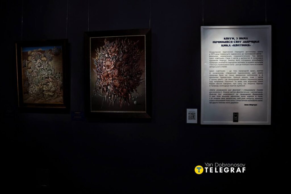Виставка “Іван Марчук. Пробудження” триває до 9 листопада і представляє роботи з циклів “Голос моєї душі”, “Пейзаж” та “Цвітіння”, пише Телеграф.